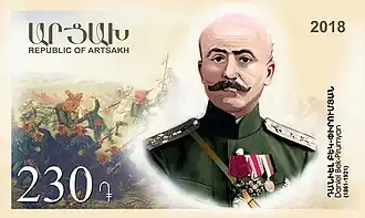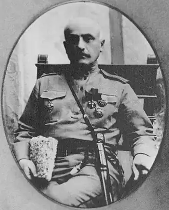 Daniel-Bek Pirumyan was born in 1861 in Nakhichevanik village of the Elisabethpol Governorate of the Russian Empire (now in the disputed region of Nagorno-Karabakh).[1] He graduated from the public school in Shusha and began his service in the Imperial Russian Army in 1881 in Yerevan.[1] He studied at the Tiflis Infantry School and the Infantry Officers' School in Oranienbaum Military Academy.[1] He was promoted to the rank of lieutenant colonel in 1913 and colonel in 1915.[1][3] During World War I, he fought on the Caucasus Front, commanding the 3rd Battalion of the 153rd Infantry Regiment in Western Armenia. During the Erzurum offensive, he captured the Turkish fort of Dalangez and then fought off the Turkish army trying to reclaim it. Of the 1,400 Russian and Armenian officers and soldiers defending the fort, 1,100 were killed and the survivors were injured. Nevertheless, eight assaults were repulsed by the fort and Dalangez was not given to the enemy.[3]