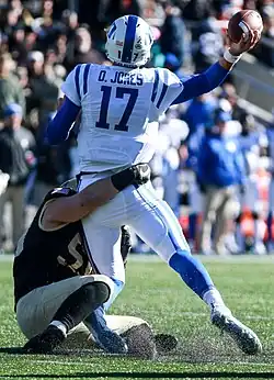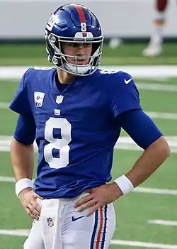Daniel Stephen Jones III (born May 27, 1997), nicknamed "Danny Dimes",[1][2][3] is an American professional football quarterback for the Indianapolis Colts of the National Football League (NFL). He played college football for the Duke Blue Devils and was selected sixth overall by the New York Giants in the 2019 NFL draft.