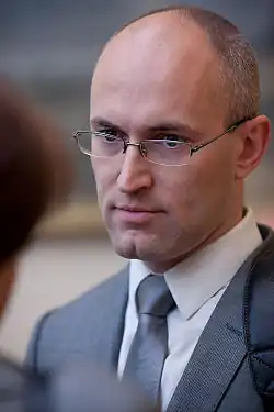 Daniels Pavļuts (born 14 May 1976 in Jūrmala, Latvia) is a Latvian politician and former Minister for Health of Latvia from January 2021 to December 2022.[1] He was formerly the Minister for Economics of Latvia, a position he served in from 2011 until 2014.[2] In addition to his political and business career, he is a concert pianist.[3]