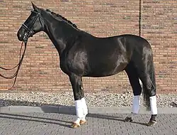 The Danish Warmblood or Dansk Varmblod is a Danish breed of modern sport horse, established in the mid-twentieth century and used mainly for dressage and show-jumping.[4]: 66 Like other European warmblood breeds, it is a performance breed: any suitable horse of any origin may be admitted if it passes a strict performance test. Hanoverian, Holsteiner, Swedish Warmblood and Trakehner are among those that have contributed to the breed.[3]: 459