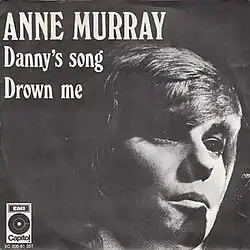 Canadian country-pop music singer Anne Murray was a fan of the original recording and recorded a cover version in 1972. Her version of the song omits two of the lyric verses and is in a different key than the original version by Loggins & Messina. Included on her album of the same name, Murray's version of "Danny's Song" was a hit, reaching the Top 10 on three major Billboard music charts in early 1973. On the pop chart, the song reached number seven (returning Murray to that chart's top ten for the first time since 1970's "Snowbird");[3] on the country chart, it peaked at number ten;[2] and on the easy listening chart, it spent two weeks at number one in March of that year.[2] Murray's version also earned her a Grammy Award nomination in the category Best Female Pop Vocal performance at the Grammy Awards of 1974, losing out to "Killing Me Softly with His Song" by Roberta Flack. Murray stated that she loved the original version, but the song took on a deeper meaning for her after the birth of her first child a few years later. In an interview, she stated that "Whenever I was singing that song, it was very meaningful."[2]