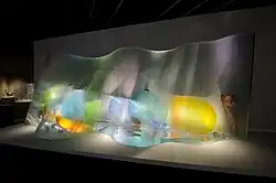 In the early 1990s, Lane's focus shifted to making large-scale glass and steel sculptures for public and corporate spaces.[14][15] Lane's first public commissions occurred in the late 1980s, including Stacked Glass Fountain (1986) in Miami, Florida and etched glass screens and a wall sculpture for the British Embassy in Helsinki in 1989, both of which contained elements that provided the basis for later work.[16]