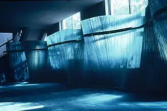 In 1994, Lane was commissioned by the Victoria & Albert Museum, London to create a glass balustrade for their new Glass Gallery.[19] The balustrade is made up of 140 pillars of cut glass, lining the stairs leading to a glass mezzanine floor[2][20][21]