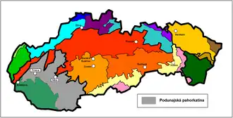 The Danubian Hills (Slovak: Podunajská pahorkatina), also translated as Danubian Upland, is the north-eastern part of the Danubian Lowland in Slovakia, often appearing as low rolling hills of prevalently eolic origin.[1]