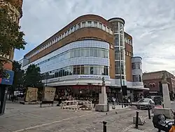The Doncaster Co-operative Society merged into Co-operative Retail Services in 1969.[6] In the 1970s, the building was renamed "Danum House".[2] It was Grade II listed in 1997.[7] Around this time, the Co-operative store closed, and in 2000, T. J. Hughes moved into the building.[8] After T. J. Hughes closed in 2011,[9] it was divided into smaller shops, with occupants including Peacocks and the British Heart Foundation, but it fell into poor repair. In 2019, the upper floors were converted into 78 flats, with a rooftop cinema.[4][10]