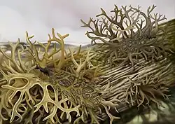 Daohugouthallus is a monotypic genus of lichen, known from fossils found in the Jurassic Haifanggou Formation near Daohugou village, Ningcheng County, China.[1] The genus contains a single species, D. ciliiferus. Although Daohugouthallus shows some relationships to the family Parmeliaceae, it is distinct enough for scientists to suggest its classification into its own family, Daohugouthallaceae.[2] Dated at approximately 165 million years ago, this macrolichen is thought to be the earliest fossil example of an epiphytic macrolichen, indicating it likely grew on gymnosperm plants.[2]