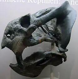 Daptocephalus is an extinct genus of dicynodont synapsid, which was found in Late Permian strata, in a biozone known precisely for the presence of fossils of this dicynodont, the Daptocephalus Assemblage Zone, in the Karoo Basin in South Africa.[2][3] An additional species, D. huenei, is known from the Usili Formation in Tanzania and was formerly assigned to the genus Dicynodon before a study in 2019 recognised that the type specimen belonged to Daptocephalus.[4]