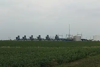 The project was first announced in 1999 by Dayton Power & Light (DP&L) to address projected electricity shortages.[1] The first four units of Darby began operations in 2001 with Units 5 and 6 beginning the following year at a cost of $55 million.[2][3] The total cost of the project was estimated to be at $183 million.[4] The peaker plant is connected by a 345kV power line originating from the former J.M. Stuart Station located in Adams County, Ohio.[5] In 2007, DP&L sold Darby to American Electric Power (AEP) for $102 million.[6] AEP would later sell Darby as a part of $2.17 billion deal to The Blackstone Group and ArcLight Capital Partners in 2016.[7]
