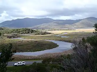 The river is traversed by the Wilsons Promontory Road near the river mouth.[1] Heavy rains in March 2011 caused unprecedented flooding of the river, damaging the bridge carrying the Wilsons Promontory Road over the river; and stranding hundreds of campers who had to be evacuated by helicopter.[5]