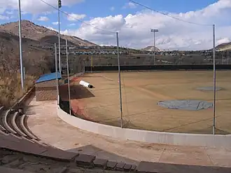 Darden Field is a historic baseball stadium that has been home to the Colorado School of Mines baseball teams since it was constructed in 1937.[1] Featuring fieldstone stands with flagstone benches built into the hillside, the park was originally a Depression-era project of the Public Works Administration. Aside from hosting collegiate baseball, the diamond has also hosted notable visitors including pitcher Satchel Paige. Also notable were the poor conditions of the infield, as evidence among the players referring to bad hops as “the ghost of Jimmy Darden”. After renovations which substantially modernized the stadium in 2007, the park was renamed Darden Field after the longtime baseball coach Jim Darden (1954-1992).