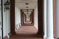 The Darden School was established on September 15, 1955, when it held its first classes. The school was a years–long effort by UVA President Colgate Darden. Initially, the school was known as the Graduate School of Business Administration and was located on the central grounds of UVA.[4][5] On July 1, 1974, the school was renamed the Colgate Darden Graduate School of Business Administration and was moved to its current location at Saunders Hall in North Grounds in 1975.[6][7] Designed by the Driehaus Prize winner Robert A. M. Stern, the Darden school's buildings feature sand-struck Virginia brick, Chippendale balustrades and red-metal standing seam roofs. In 2018, the Sands Family Grounds was inaugurated by the Darden School, in Arlington County, Virginia, in proximity to Washington D.C.'s central business district.[8] The Sands Family Grounds occupy the top two floors of a 31-story skyscraper..