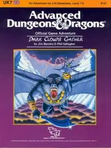 UK7 Dark Clouds Gather was written by Jim Bambra and Phil Gallagher, with art by Brian Williams, and was published by TSR in 1985 as a 32-page booklet with an outer folder.[1]
