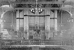 By 1903 the public hall was adorned with a fine new pipe organ, a gift to the town from the widow of James Slater, an ex-chairman of the local board, in his memory. The instrument was built by the West Yorkshire firm of J. J. Binns and was fully reported in the Musical Times.[9] The organ is still in use.[10] In June 2018 the Darlaston Town Hall pipe organ was recognised of outstanding national importance by the British Institute of Organ Studies (BIOS) – the UK's amenity society for pipe organs – and is listed as Grade 1 in the UK Historic Organs Scheme for being: an unaltered example of a town hall organ of 1903 by J. J. Binns and from the firm’s finest period.[11]