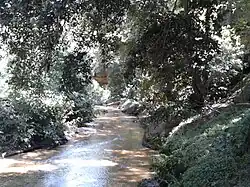 The Darling Mills Creek rises in the north-western suburbs of Sydney, west of Thompsons Corner, near the intersection of Castle Hill Road and Pennant Hills Road, within the suburb of West Pennant Hills. The headwaters lie on the watershed between the Hornsby Plateau and the Cumberland Plain. The creek flows generally west, then south, joined by its tributaries including the Bidjigal, Sawmill, Excelsior, Blue Gum, Bellbird, Bellamy Farm creeks and the dammed Hunts Creek downstream of Lake Parramatta, before reaching its confluence with the Toongabbie Creek to form the Parramatta River, in the suburb of North Parramatta, in land adjoining the northern boundary of the Cumberland Hospital.[2] The course of the creek is approximately 10 kilometres (6.2 mi); and the creek passes through the Cumberland State Forest, the Darling Mills State Forest, Bidjigal Reserve, Excelsior Park, and many smaller reserves and parks.[1]