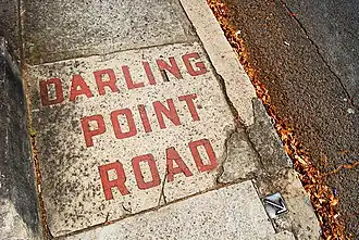 Darling Point Road is one of the main roads within the suburb Darling Point in the Eastern Suburbs of Sydney, New South Wales, Australia. It was widened in the 1920s.[1][2][3] It has had notable houses on its traverse through Darling Point.[4]