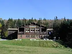 1935 saw the fire which destroyed Moosilauke's log cabin. After further investment in surrounding lands, the Moosilauke Ravine Lodge was built in 1939 as one of the largest log buildings in New Hampshire.[12]