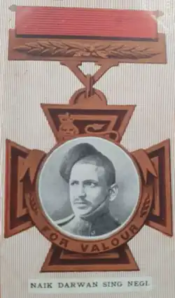 Darwan Singh Negi VC (4 March 1883 – 24 June 1950) was one of the first Indian soldiers to be awarded the Victoria Cross (VC),[1] the highest and most prestigious award for gallantry in the face of the enemy that can be awarded to British and Commonwealth forces.