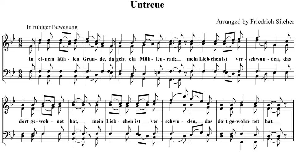 - ^ "491. Untreue". Volksliederbuch für Männerchor (in German). Vol. 2. 1906. p. 448 – via Internet Archive.