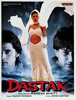 Dastak (transl. Knock) is a 1996 Indian Hindi language Psychological thriller film edited and directed by Mahesh Bhatt, produced by Mukesh Bhatt with a script written by Vikram Bhatt starring Sushmita Sen in her debut film co-starring Mukul Dev with Sharad Kapoor as the villain.[1][2] The film was shot in South Africa and Seychelles.[3]