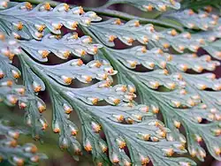 Davallia solida var. pyxidata known as the hare's foot fern, is a variety of fern that occurs in eastern Australia and is usually identified as a lithophyte or epiphyte in or near rainforest areas.[1] However, it may also be seen in a few locations west of the Great Dividing Range. Listed as vulnerable in Victoria, occurring in the Grampians.