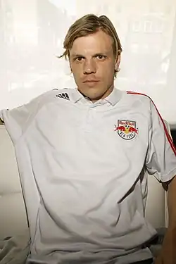 In June 2006, Van den Bergh (who is married to an American) was signed by the Kansas City Wizards, for whom he scored three goals in thirteen appearances . Prior to the 2007 MLS season, he was traded to New York Red Bulls in exchange for a third-round draft pick in the 2007 MLS Supplemental Draft.[2] During the 2007 season, Van den Bergh obtained a U.S. Green Card, meaning that he was now considered a domestic player instead of a senior international. He quickly established himself as the team's starting left winger, and also moved to the left back position. He ended his first season with the club appearing in 29 league matches, including 26 starts. He tallied two goals and led the club with eight assists. In 2008 Van den Bergh continued his fine play with New York appearing in 26 league matches recording seven goals and five assists. He scored the most important goal in club history in the Western Conference Final leading New York to a 1–0 victory over Real Salt Lake and a berth in the 2008 MLS Cup.