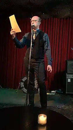 David Dephy (Georgian: დავით დეფი, born June 21, 1968), also known as David Dephy Gogibedashvili, is a Georgian / American poet, novelist, essayist, performer, multimedia artist, painter, the founder of Poetry Orchestra and the poetic order Samcaully. He is the author of eight novels and seventeen collections of verse and three poetry bilingual audio albums with orchestra and electronic bands. Named as Literature Luminary by Bowery Poetry, Stellar Poet by Voices of Poetry, Incomparable Poet by Statorec, Brilliant Grace by Headline Poetry & Press and Extremely Unique Poetic Voice by Cultural Daily. He lives and works in New York City, USA.