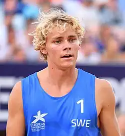 Klas David Åhman (born 20 December 2001) is a Swedish professional beach volleyball player. Together with Jonatan Hellvig, he won the gold medal at the 2024 Summer Olympics[1] and the silver medal at the 2023 Beach Volleyball World Championships.[2] He is currently ranked number one on the FIVB Beach Volleyball World Ranking.[3]