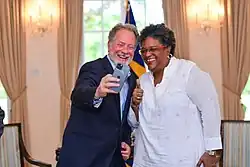 In his capacity as executive director of WFP, Beasley served at the level of Under-Secretary-General of the United Nations and was a member of the organization's Senior Management Group (SMG) under Guterres.[21] Since 2019, he has been a member of the World Economic Forum High-Level Group on Humanitarian Investing, co-chaired by Børge Brende, Kristalina Georgieva and Peter Maurer.[22]