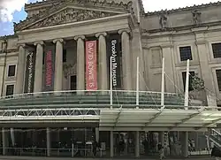 ![]() A view of the Brooklyn Museum in New York flying a David Bowie Is banner in March 2018 | |