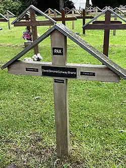 Braine is buried at Pluscarden Abbey, near Elgin, Scotland.[1]