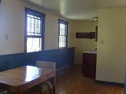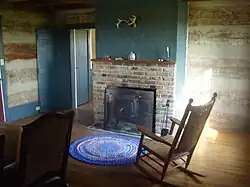Originally this home was two rooms, one on top of another, 17' by 20', with a full field stone cellar below. The interior consisted of a stairway to the south, opposite the chimney, on the north side of the interior. Since "by 1800 iron foundries in the Ohio Valley were capable of casting stoves",[1] this allowed for a chimney to be held within the structure. Additionally, there were two movable glazed sash windows in each room on the east side and two doors: one facing the river to the east and one opening to the west (or rear) of the home.