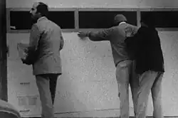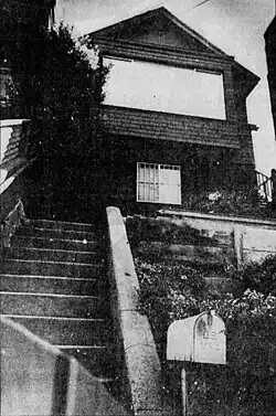 From January to February 1970, Carpenter went on a crime spree in the Bay Area.[21] The first of these cases occurred after he rear-ended a vehicle being driven by a young woman, and after a heated exchange he shoved her to the ground and raped her before stabbing her with a spatula.[10] He was armed with a hunting knife during the second attack, which was against a 19-year-old girl in Boulder Creek.[21] On February 3, he forced his way into the home of 45-year-old Lucille Davis in Modesto, where he bound her wrists and demanded for her car keys, and he subsequently stole her vehicle and drove to Angels Camp. There, he confronted a 21-year-old mother and forced her to drive him to Oakdale while her 16-month-old son sat in the back of the vehicle.[22] When they arrived, Carpenter forced both out and drove off.[23] After he was detained on February 4, investigator James Marston obtained permission from Carpenter's wife to search their vehicle, which was found to have contained the knife used in the second attack.[24]