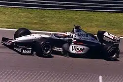 In 1997, Coulthard again partnered Häkkinen at McLaren. He started his season by taking victory in the opening round in Australia.[30] Coulthard was unable to score in the next four rounds, due to being involved in a collision in Argentina and contended with unreliability with his car. The factor of unreliability had an impact throughout the season, which became notable in Canada when Coulthard made a pit stop while leading and the car developed clutch problems. He suffered from four more retirements throughout the season, and was able to take victory at the Italian Grand Prix.[31] He was able to secure two more podium positions in Austria and Jerez, where Coulthard conceded second place to teammate Häkkinen under team orders.[32] Coulthard managed to finish in third place in the Drivers' Championship, tied on points with Benetton driver Jean Alesi.[33]