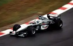 The first rounds of the season proved difficult for Coulthard; In the opening round in Australia, he retired from engine problems, and finished second in Brazil, before being disqualified as the front wing endplates on his car 7mm lower than the required 50mm above the reference plane.[46] Coulthard overcame these setbacks and finished on the podium in the next five races, which included victories in Britain and Monaco. In June, Coulthard signed an extension to his contract, confirming he would remain at McLaren for 2001.[47] A non-points scoring finish in Canada, followed victory in France, a victory which he later described as the most memorable of his career which also happened to be McLaren's only ever win at the Magny-Cours circuit.[48] A hat-trick of podiums followed in the next three rounds and secured a fourth-place finish in Belgium. Coulthard was involved in a multi-car collision on the first lap in Italy. This would be marked by scoring points in the final three rounds, including podiums in Japan and Malaysia. Coulthard finished third in the Drivers' Championship, with 73 points, and McLaren finished second in the Constructors' Champions.[23] For his efforts during the season, Coulthard was awarded his second Hawthorn Memorial Trophy.[42]