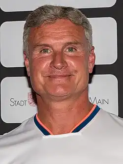 Coulthard did not participate in 2010 and was replaced by BTCC driver Jason Plato.[95] Coulthard returned for 2011, joining the All-Stars team alongside Filipe Albuquerque. Neither driver achieved success at the competition.[96] In 2012, Coulthard remained in the Race of Champions and returned to compete for Great Britain, partnering Andy Priaulx.[97] The pairing were eliminated in the group stages,[98] with Coulthard being eliminated during the semi-finals by Kristensen in the Drivers' Cup.[99]