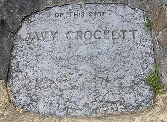 ![]() 19th-century inscription on the footstone of the original Crockett cabin | |