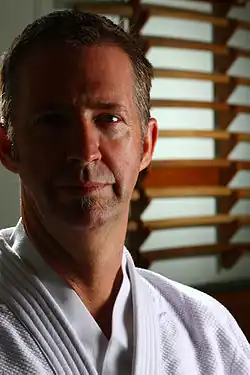 In 1991, Dangerfield began his study of Yoshinkan Aikido with Joe Thambu Shihan of Aikido Shudokan.[2] Dangerfield officially founded the Aikido Institute Inc. in 1991 as a nonprofit organization to train martial artists on Queensland's Sunshine Coast.[3] The Aikido Institute was a full-time dojo that provided alternative educational programs based on Aikido for young people in local schools.[4] Dangerfield earned his nidan (second black belt) in 1993, at which time Dangerfield began traveling to Japan to deepen his understanding of Aikido and Budo in general. Twice a year, he traveled to Japan for month-long training trips, where he trained at the Yoshinkan Hombu Dojo under Inoue Kyoichi Sensei and Chida Tsutomu Sensei. He also traveled occasionally to the Aikikai Hombu Dojo in Tokyo and several times to Iwama, where he trained with Saito Morihiro Sensei.[5]