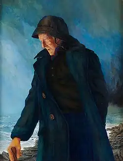 In 1967, Hanna moved with his family to Bristol, Maine. The family first resided in the Pemaquid Point Lighthouse and later in a house in the village of Round Pond.[1] A large body of work between 1968 and 1975 includes paintings and drawings such as Two Different Horizons (1971), Night Watch (1971), and Final Farewell (1975) depicting Captain Alexander Breede (d. 1971), a retired seaman.[2][9]