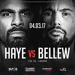 - ^ "David Haye v Tony Bellew set for March 4 in London at heavyweight". 25 November 2016. Archived from the original on 26 November 2016. Retrieved 25 November 2016.
