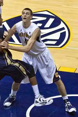 Kravish played for seasons with the California Golden Bears. He became a starter for the team during his freshman season, appearing in all 34 of California's games with 24 starts and averaging 6.9 points and 5.6 rebounds per game while leading the team with 41 blocked shots (1.2 per game). Kravish was named to the Pac-12 Conference All-Freshman Team. As a sophomore, he averaged 7.9 points, 6.9 rebounds and 1.7 blocks per game.[1] In his junior season, Kravish averaged 11.4 points, 7.7 rebounds and 2.1 blocks per game and set a school record with 73 blocked shots which has since passed by Kingsley Okoroh.[2][3] He averaged 11.3 points, 7.0 rebounds and 1.5 blocks per game as a senior.[4]