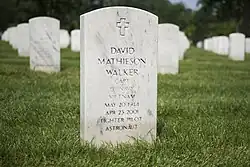 Walker was born May 20, 1944, in Columbus, Georgia. In his youth, he was a Boy Scout with Troop 8 in Eustis, Florida, and earned its highest rank of Eagle Scout.[1] He died on April 23, 2001, from cancer; he was 56 years old and was being treated at University of Texas M.D. Anderson Cancer Center in Houston, Texas. His wife, the former Paige Lucas, and two adult sons from a previous marriage survived him. He was interred at Arlington National Cemetery on May 24, 2001.