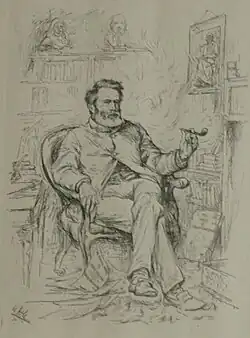 When he first arrived in Edinburgh in 1865, Masson lived in Rosebery Crescent, then he lived at 10 Regent Terrace from 1869 to 1882 before moving to Great King Street.[8] Among the friends who visited him were the philosopher John Stuart Mill and the historian Thomas Carlyle.[8] J.M. Barrie was a student of Masson in 1878–1882, and Masson is credited with being the future dramatist's literary mentor.[9]