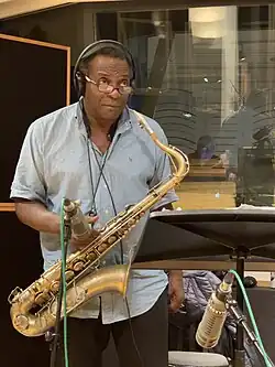 Murray was a founding member of the World Saxophone Quartet with Oliver Lake, Julius Hemphill and Hamiet Bluiett.[6] He has recorded or performed with musicians such as Henry Threadgill, James Blood Ulmer, Olu Dara, Tani Tabbal, Butch Morris, Donal Fox, McCoy Tyner, Elvin Jones, Sunny Murray (no relation), Ed Blackwell, Johnny Dyani, Fred Hopkins, Don Pullen, Randy Weston and Steve McCall. David Murray's use of circular breathing has enabled him to play astonishingly long phrases.[7]