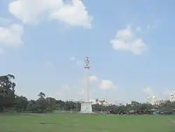 When Durjan Sal revolted in 1825 against Balwant Singh, the infant Raja of the Princely state of Bharatpur, Ochterlony acting on his own accord supported the young Raja by proclamation and ordered out a force to support him. However, the Governor-General of India, Lord Amherst, repudiated these proceedings and ordered the army to return. Ochterlony, who was bitterly chagrined by this rebuff, resigned his office and retired to Delhi. He was to be replaced by his good friend Sir Charles Metcalfe. The feeling that the confidence that his length of service merited had not been given him by the governor-general is said to have accelerated his death, and he died at Meerut in July 1825. He is interred in St. John's Church in Meerut.[7] The Ochterlony column at Calcutta commemorated his name, though it has since been rededicated.[5]