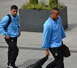 On 31 January 2012, Pizarro signed for Manchester City on loan from Roma for the remainder of the 2011–12 season, reuniting his former head manager at Inter, Roberto Mancini.[10] Pizarro made his debut four days later as an added-time substitute for Adam Johnson in City's 3–0 win against Fulham, becoming the first Chilean to play for Manchester City. On 22 February, he came off the substitutes' bench to score and had an assist against Porto in the UEFA Europa League as City won 4–0 in the second leg of the tie, having won 2–1 in the away leg.[11]