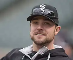 After the 2014 season, Robertson became a free agent. He subsequently agreed to a four-year, $46 million contract with the Chicago White Sox.[30] Robertson served as the White Sox closer during his tenure in Chicago. In his first season with the White Sox, Robertson compiled a 6–5 record with 34 saves (sixth in the AL), a 3.41 ERA, and 86 strikeouts in 63+13 innings, averaging 12.2 strikeouts per nine innings.[27] He blew seven saves, but struck out 34.4% of batters and lowered his walk rate to a career-best 5.2%, averaging 1.8 walks per nine innings.[31] He limited the first batters he faced to a .100 batting average, the lowest rate in both the AL and in White Sox history.[1]