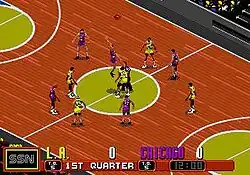 David Robinson Supreme Court (known in Japan as David Robinson Basketball (デビッド・ロビンソン バスケットボール)[5]) is a basketball video game released by Sega exclusively for the Sega Genesis in 1992. The game was endorsed by NBA player David Robinson[6] but does not feature an NBA license and instead features four different fictional American teams.