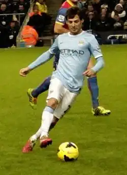 The 2013–14 Premier League season was a tough one for Silva, as numerous injuries limited him to just 27 league appearances. Nonetheless, he did well to maintain his stellar record of goals and assists for Manchester City. On 19 August 2013, Silva scored Manchester City's opening goal of the campaign in a 4–0 win against Newcastle United at the City of Manchester Stadium.[47] He followed this up with an assist in the 3–2 defeat at Cardiff, crossing for Alvaro Negredo to score.[48] On 5 October, Silva began one of his most productive spells in the Premier League. Making his first league start since August following a number of injury setbacks,[49] he assisted Sergio Aguero to score against Everton,[50] before scoring once and setting up another in a 3–1 victory over West Ham.[51] Silva then scored again in the 7–0 home win over Norwich on 2 November, but his good form was curtailed by a calf injury, which ruled him out of City's next six games.