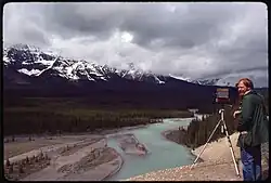 David Stephenson was born in 1955 in Washington, D.C., the third child of two scientists, Elizabeth W. and John L. Stephenson.[2] While attending public schools in suburban Maryland, he took Saturday classes at the Corcoran School of the Arts and Design under artists including Juan Downey. Drawn to nature and the environment from an early age, he was inspired by the writings and environmental advocacy of John Muir.[2] His love of the mountains drew him to Colorado, where he began undergraduate studies in the sciences and humanities at the University of Colorado Boulder in 1973. Classes with Gary Metz stimulated his growing interest in photography, and he completed a BFA in studio art and a BA in art history in 1979.[2] In Colorado he also met Robert Adams, who lived in nearby Longmont and was an early mentor.[2] He moved to Albuquerque in 1979 to start graduate studies at the University of New Mexico, working under Thomas Barrow, Beaumont Newhall, and Van Deren Coke.[2] Photographing across the American Southwest and California from 1979 to 1981 with a large format camera, and inspired by artistic precedents from Carleton Watkins to Robert Smithson, he produced his first major body of work, New Monuments, which focussed on industrial structures in the landscape.[3] After completing a Master of Arts in 1980, he was awarded a National Endowment for the Arts grant, which allowed him to travel to Alaska in 1981 to photograph the newly completed Trans-Alaska Pipeline. Responding to the Pipeline’s linearity and influenced by 19th century photographers such as Watkins, he first worked with panoramic composites in Alaska, a pictorial strategy he would return to periodically for subsequent series. Stephenson completed a Master of Fine Arts at the University of New Mexico in 1982 with an exhibition of the Alaskan panoramas, and a dissertation on the 19th century photographers of the transcontinental railroad.[2] In 2001, he was awarded a PhD in Fine Arts from the University of Tasmania.