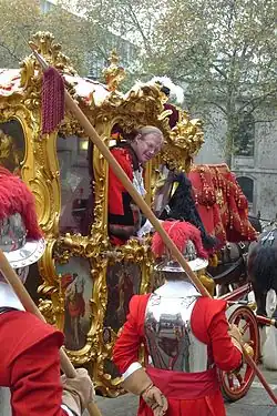 ![]() Wootton, as newly-elected Lord Mayor, waving to the crowds from the Lord Mayor's Coach | |